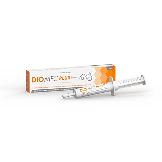 Diomec Plus Paste for Cats & Dogs is a veterinary product designed to manage digestive issues such as diarrhea in pets. It contains ingredients that help soothe the digestive tract, restore gut balance, and improve stool consistency.